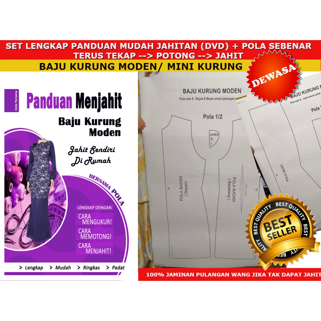 Insyaallah pola mudah di fahami dan mudah dijahit (pola tanpa zip) sepasang pola baju kurung baju moden tanpa zip *(leher bulat teluk belanga) kain duyung .
